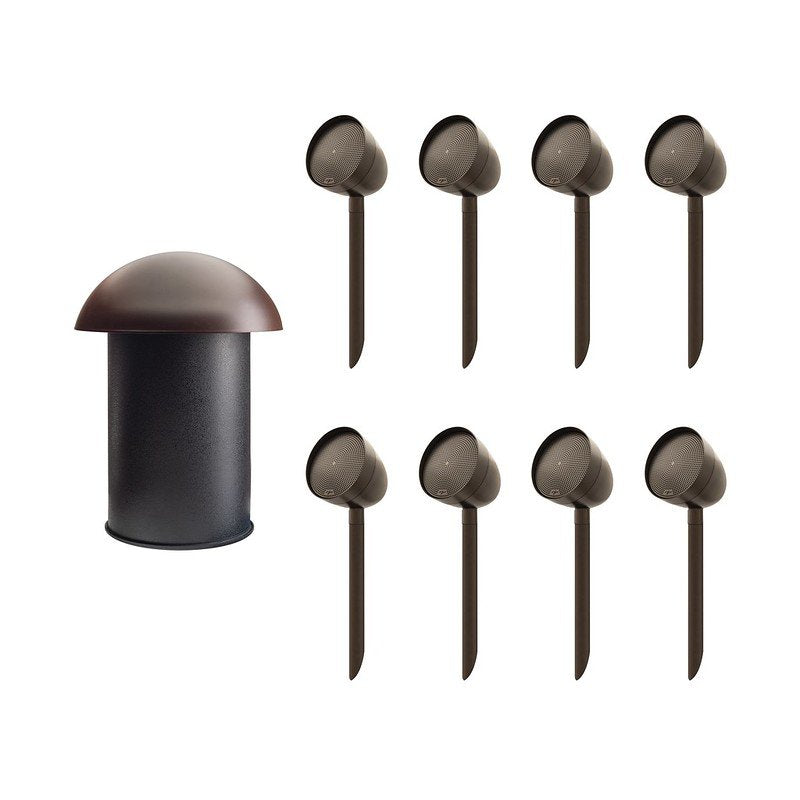 The Garden Oasis Essentials System is a complete outdoor speaker solution designed to deliver balanced, immersive sound throughout landscaped spaces. Built around a distributed satellite speaker layout with a dedicated in-ground subwoofer, this system creates even coverage across patios, lawns and entertaining areas without visible wall-mounted boxes.