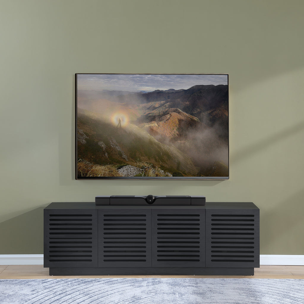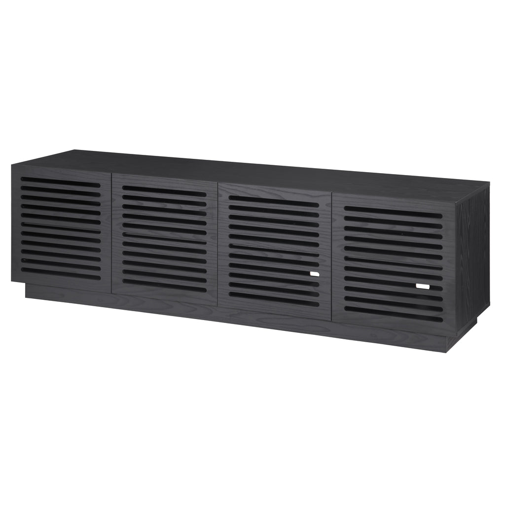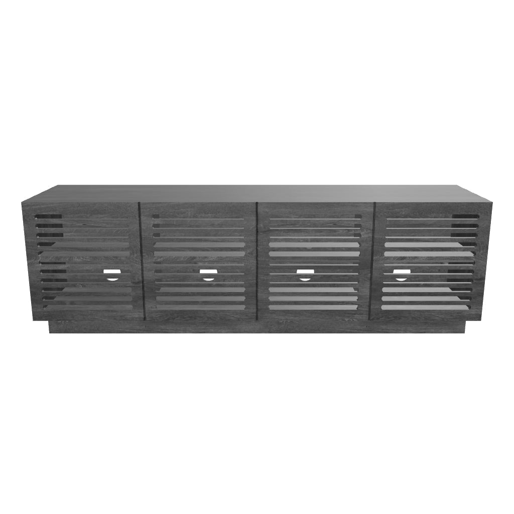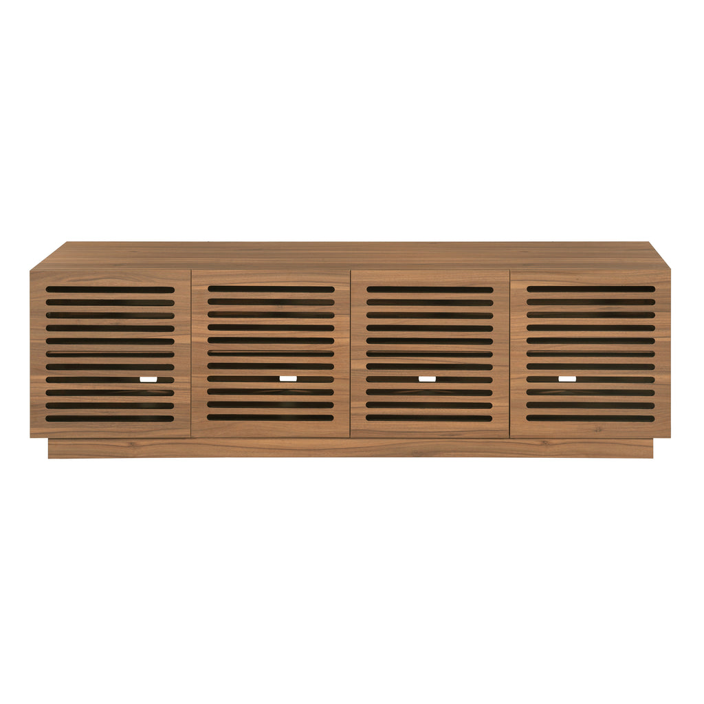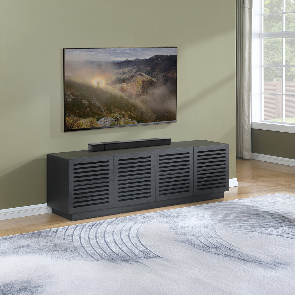 - Four slatted cabinet doors: Sculptural look with practical ventilation for electronics.