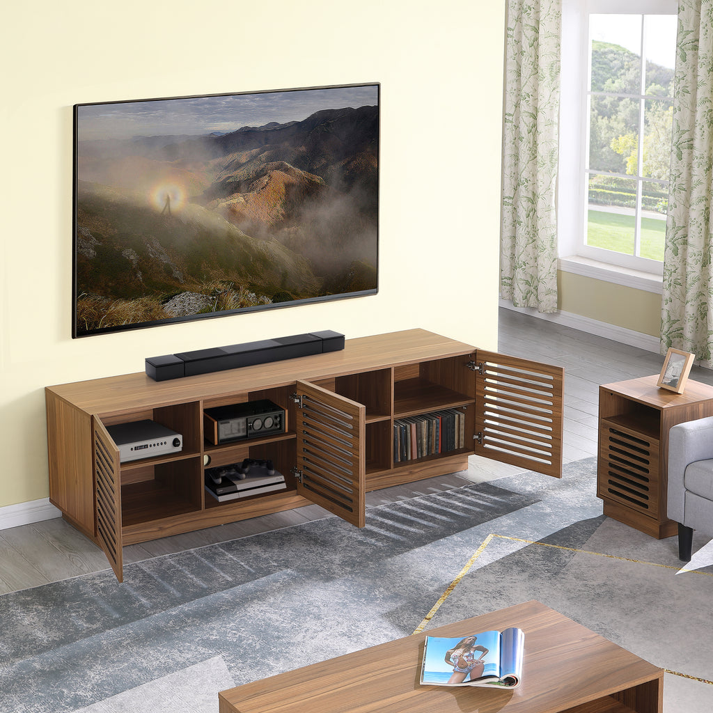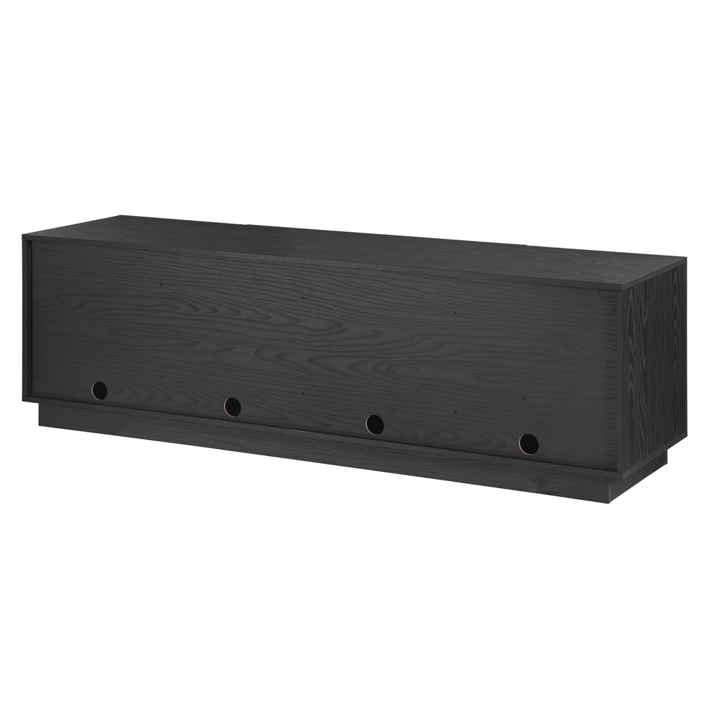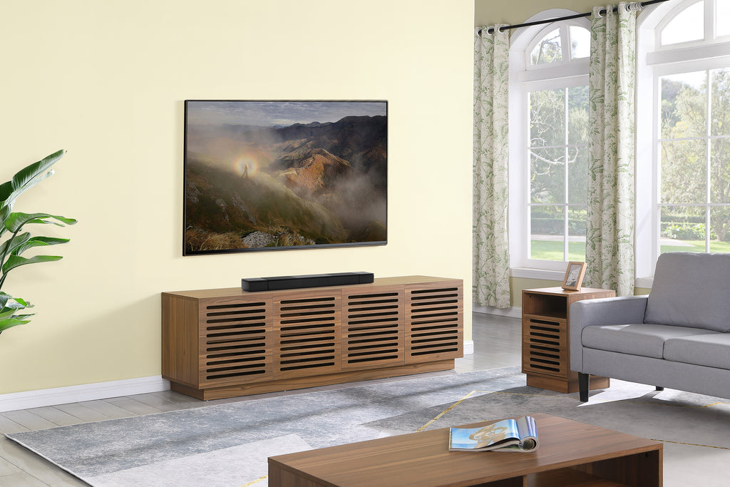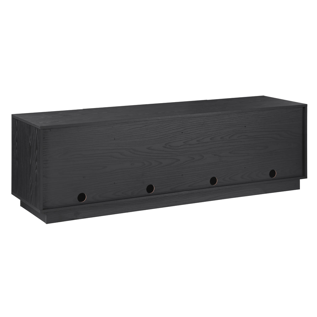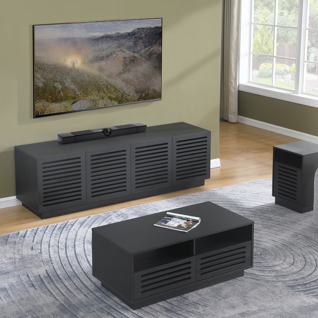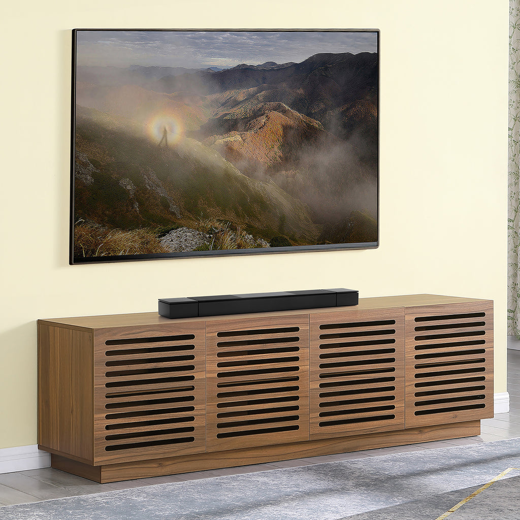 - Four slatted cabinet doors: Sculptural look with practical ventilation for electronics.