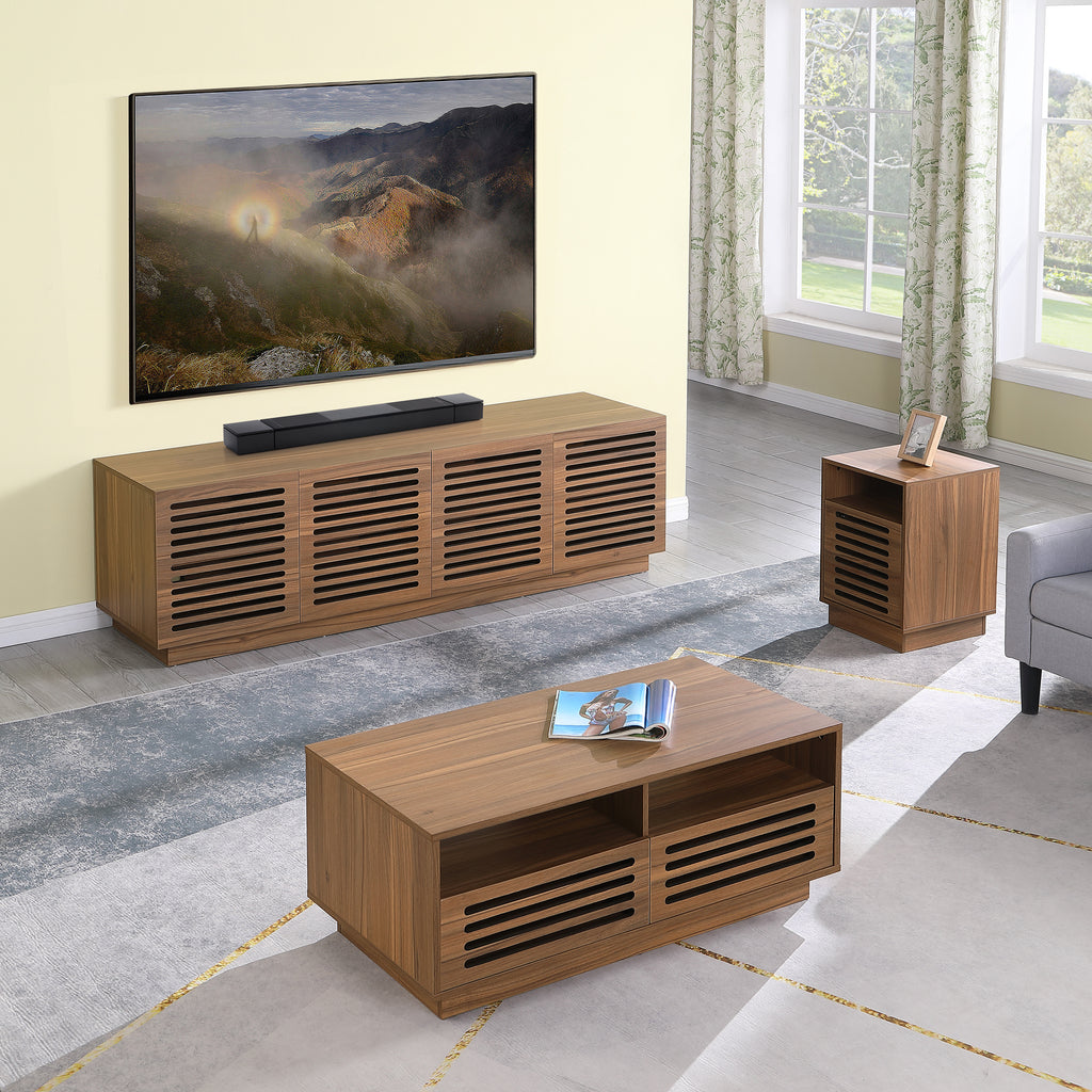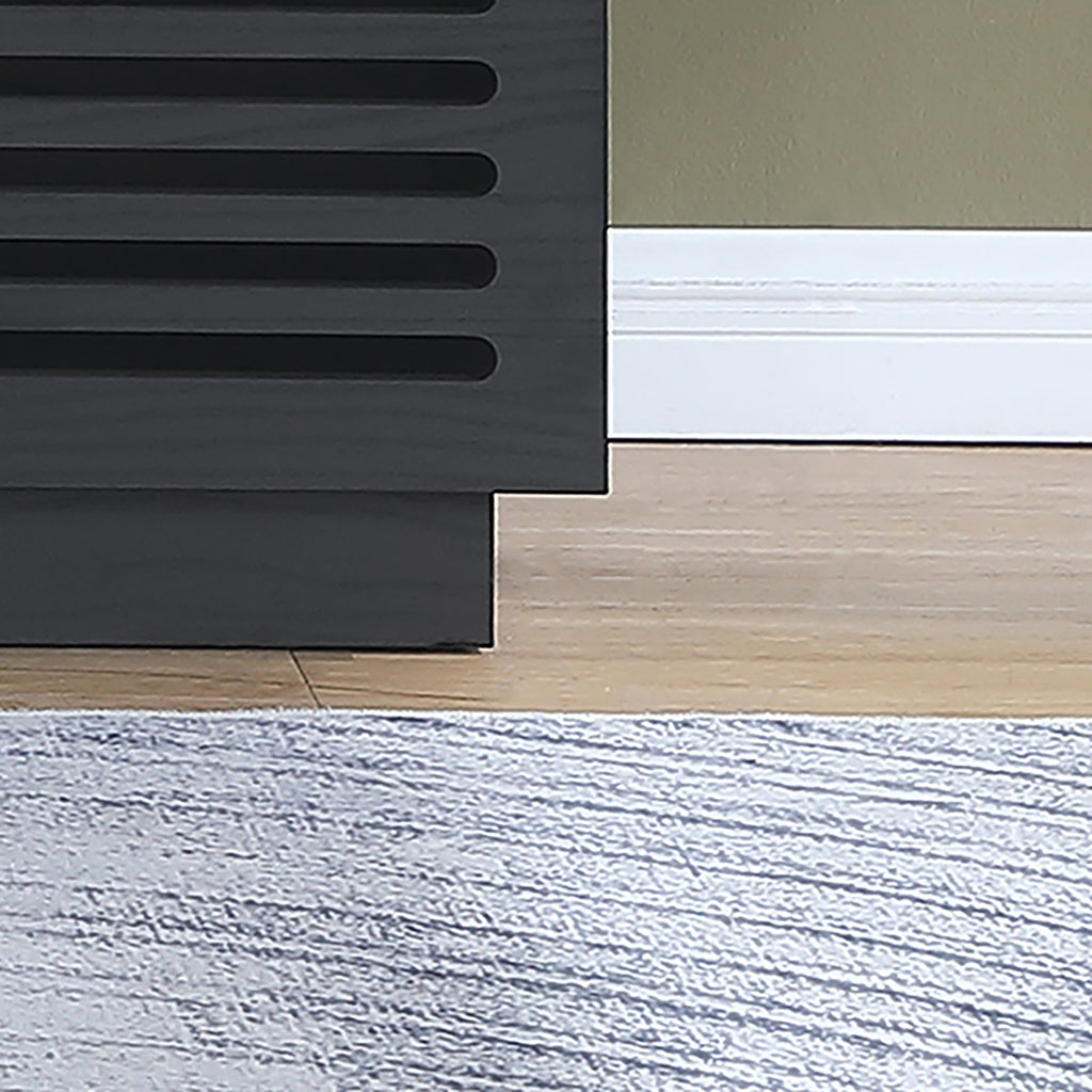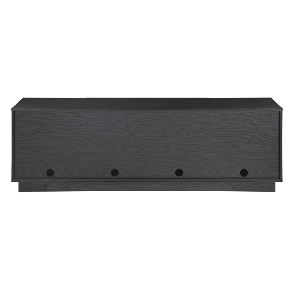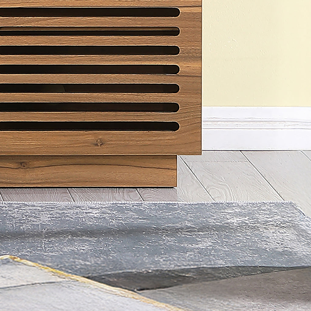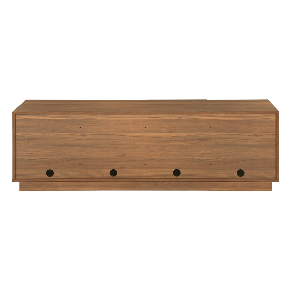 - Four slatted cabinet doors: Sculptural look with practical ventilation for electronics.