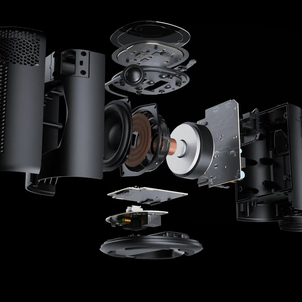 100 W peak output from a custom 4″ long-throw woofer and dual 1″ silk-dome tweeters. Wiim Blog
